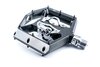 Click Flat-Pedal mit beidseitigem Klick-System, SPD-kompatibel, CNC-veredelter Aluminiumkörper und CrMo Achse, angefaste Kanten für erhöhte Bodenfreiheit in Kurven, große Standfläche, extrem flache Bauweise, 16 austauschbare und einstellbare Pins, gedichtete Industrielager
