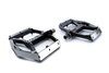 leichtes Flat-Pedal, CNC-veredelter Aluminiumkörper und CrMo Achse, angefaste Kanten für erhöhte Bodenfreiheit in Kurven, große Standfläche, extrem flache Bauweise, neun austauschbare Pins pro Seite, gedichtetes Patronengleitlager und zwei gedichtete Industrielager