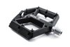 leichtes Flat-Pedal, Nylon-verstärkter-Kunststoff-Körper und CrMo Achse, angefaste Kanten für erhöhte Bodenfreiheit in Kurven, große Standfläche, extrem flache Bauweise, neun austauschbare und einstellbare Pins pro Seite, gedichtete Industrielager